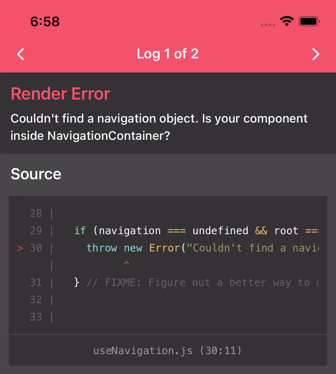 If you are using the library @react-navigation/native and you are using hooks like useNavigtion and useRoute inside your component, you are likely to get the below error: